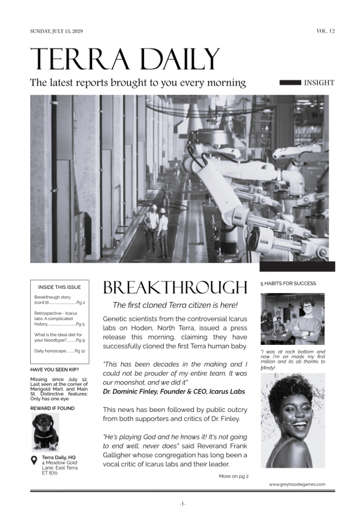Be the first to discover the world of Terra, it’s habitants and why they were forced to leave.